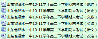 百度:山东省泗水一中10-11学年高二下学期期末考试(文科6份)