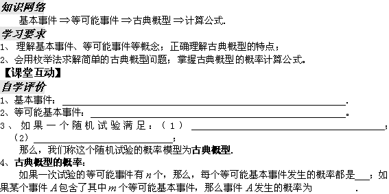 2011年高二数学学案:3.2《古典概型》(苏教版必修3)