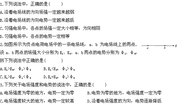 百度:2011年高二物理同步测试:2.1《电场力做功与电势能》(鲁科版选修3-1)