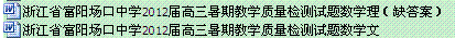 百度:浙江省富阳场口中学2012届高三暑期教学质量检测试题数学文理打包下载!