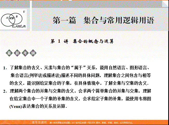 百度:创新设计2012版高考数学【人教B版(文)】总复习(课件):第1篇 集合与常用逻辑用语 第 1 讲 集合的概念与运算