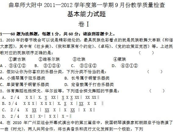百度:山东省曲阜师大附中2012届高三9月教学质量检测(基本能力)