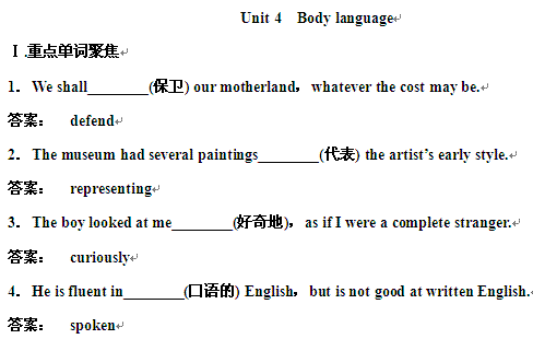 有道:2012届高考英语一轮复习精讲精练学案系列:Unit 4 Body language(新人教版必修4)(全国通用)