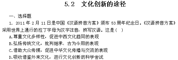 2011高二政治试题:5.2文化创新的途径(新人教版必修3)
