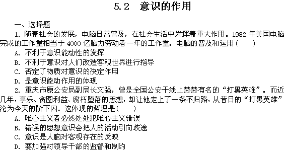 谷歌:2011高二政治试题:5.2意识的作用(新人教版必修4)