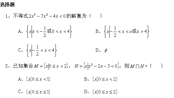 百度:2011年高二数学测试:3.2《一元二次不等式及其解法》(新人教A版必修5)