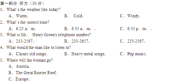 百度:福建省福州三中2012届高三9月月考试题英语