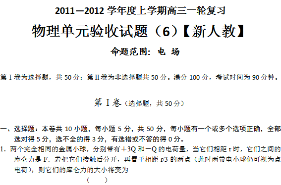 百度:2011-2012学年新课标高三上学期单元测试(6)(物理)