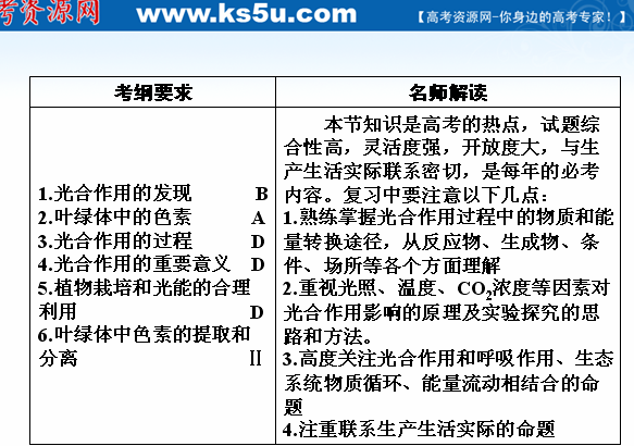 有道:2012高三生物一轮复习同步辅导课件(大纲版):第11课时 光合作用