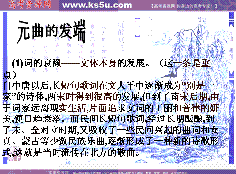 谷歌:2011年高二语文课件:2.7《元曲五首》(语文版必修3)