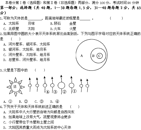百度:河北省南宫中学2010-2011学年高一9月月考(地理)