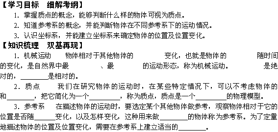 有道:2011年高一物理学案:1.1《质点、参考系和坐标系》(新人教版必修1)