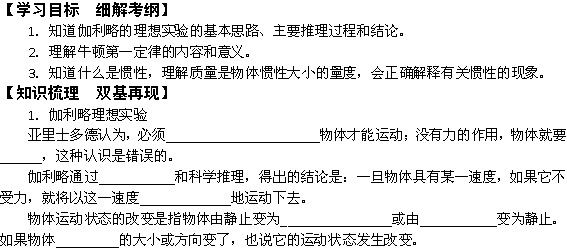 百度:2011年高一物理学案:4.1《牛顿第一定律》(新人教版必修1)