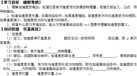谷歌:2011年高一物理学案:速度变化快慢的描述——加速度(新人教版必修1)