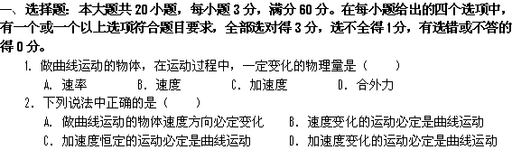 谷歌:四川省成都外国语学校10-11学年高一下学期期末考试(物理)文科 无答案
