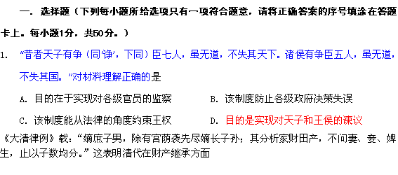 百度:【KS5U独家】河北省衡水中学2011—2012学年度高三上学期一调考试(历史)
