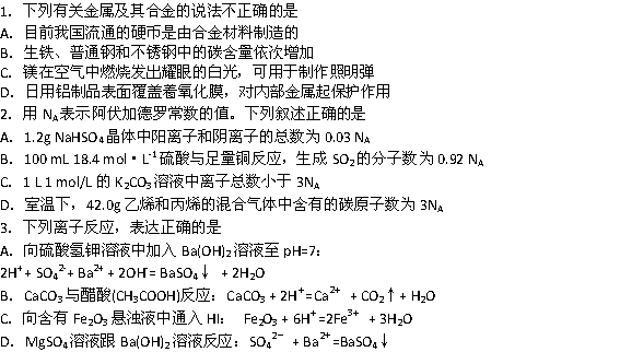 百度:浙江省杭师大附中高三化学随堂适应性训练17