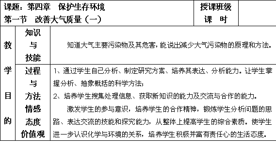 有道:江苏省平潮高级中学集体备课教案——选修1 《第四章 保护生存环境》第一节 改善大气质量