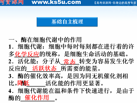 有道:2012优化方案高三生物一轮复习课件:必修1第5章第1节降低化学反应活化能的酶