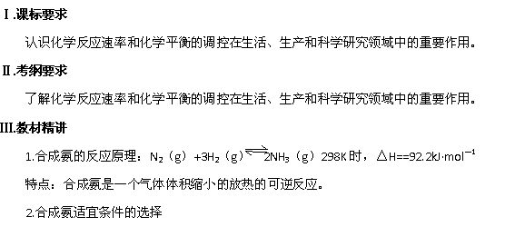 有道:2012届高三化学第一轮复习考点详析:考点17 反应速率与限度理论在化工生产上的应用