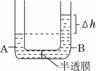 1.(2011届·南京模拟)如图所示,u形管底部中央放置一半透膜(不允许溶质分子透过)。a液和b液原先体积相同,由于浓度不同,后来产生一个高度差δh。请问δh主要取决于 ( )