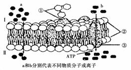 【解析】根据图解可知①表示糖被,②表示磷脂,③表示蛋白质,不同物种的细胞中②的种类是相同的,因此a项错误。a物质进入细胞的方式是从高浓度向低浓度扩散的,它不需要载体也不需要能量,因此为简单扩散,而b物质进入细胞是从低浓度向高浓度逆浓度梯度进行的,需要能量,也需要载体,因此为主动运输,所以b项正确、c项错误。细胞的识别和细胞的癌变与①糖被有密切关系,所以d项错误。