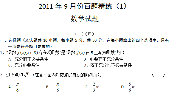 百度:2011年9月份百题精练(1)(数学)