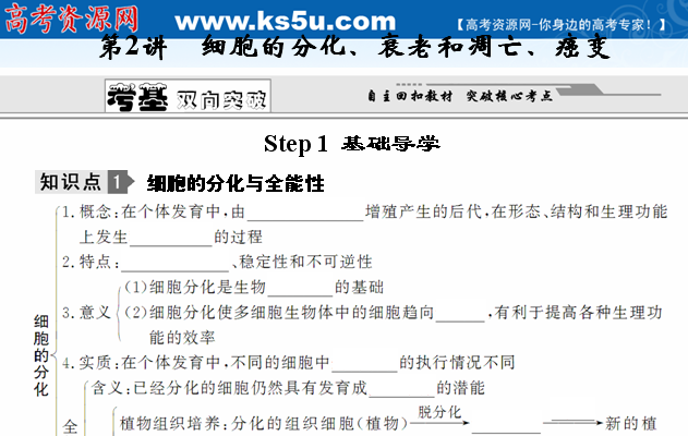 有道:2012第1轮高考生物复习课件《创新设计》人教版:1-4-2细胞的分化、衰老和凋亡、癌变