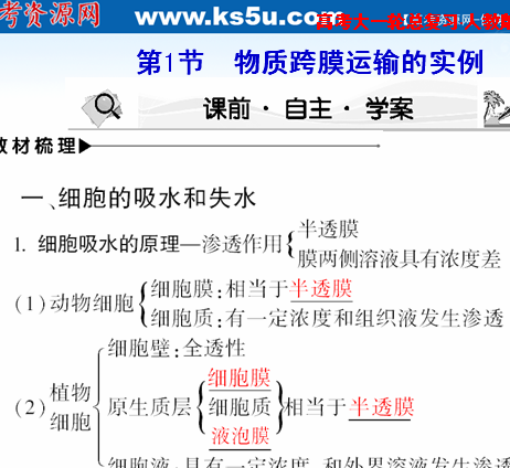 谷歌:2012高三生物一轮复习课件《课堂新坐标》人教版:必修一第四章第1节物质跨膜运输的实例