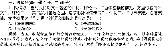 百度:2012高二历史试题:第5单元单元检测(新人教版必修3)