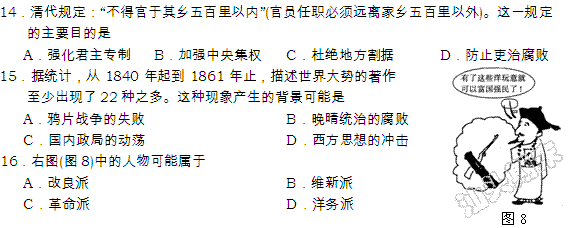 有道:【KS5U首发】广东省汕头市2012届高三毕业班教学质量检测试题历史