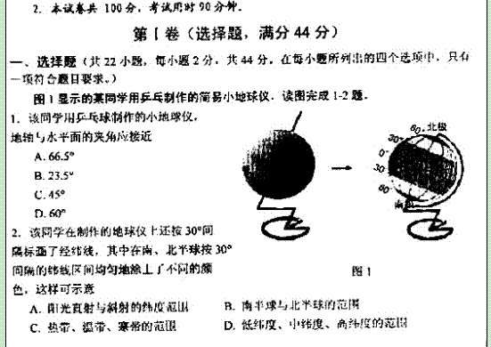 谷歌:河北省唐山市2011-2012学年高二上学期期末统一考试(地理)扫描版