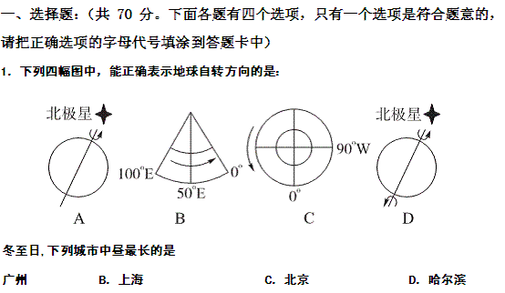 百度:【KS5U首发】广东省惠阳高级中学11-12学年高一上学期期末试题地理