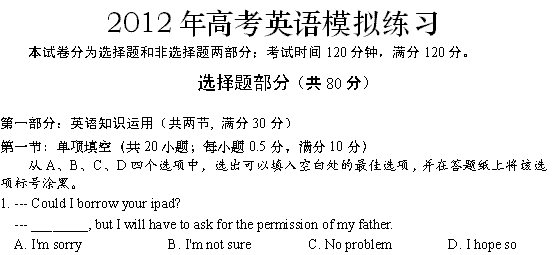 谷歌:浙江省苍南县灵溪中学2012年高考英语模拟练习