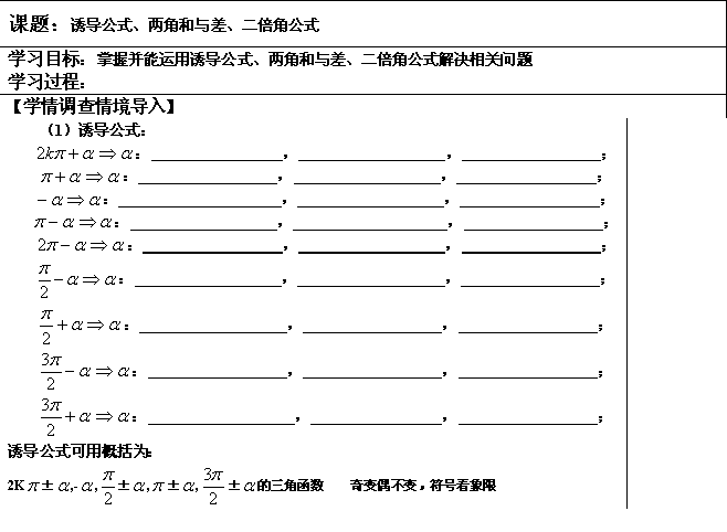 谷歌:山东省淄川般阳中学高二数学《诱导公式、两角和与差、二倍角公式》学案