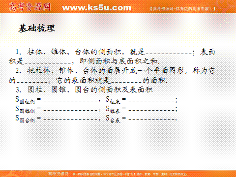 有道:2012学案与评测文数北师大版(课件):第7单元第2节简单几何体的表面积与体积