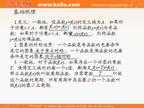 有道:2012学案与评测文数苏教版(课件):第2单元第5节函数的奇偶性和周期性