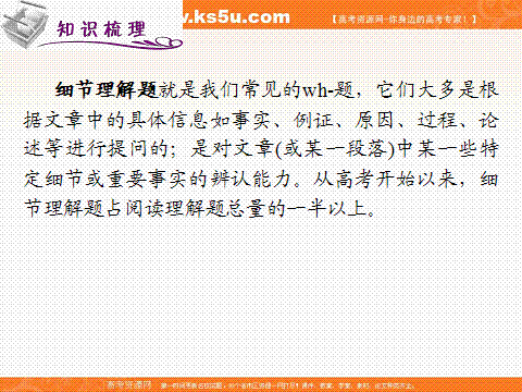 有道:浙江省2012届高考英语二轮专题总复习课件:第18讲 细节理解题