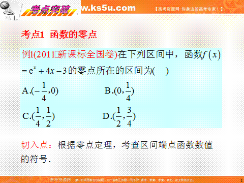 有道:广东省2012届高考数学文二轮专题复习课件:专题1 第07课时 函数与方程