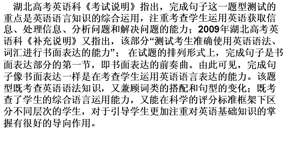 百度:2012高考英语二轮复习课件:第4模块-完成句子(新课标湖北专用)