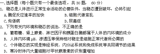 百度:【KS5U首发】湖南师大附中2011-2012学年高二上期期末考试生物试题