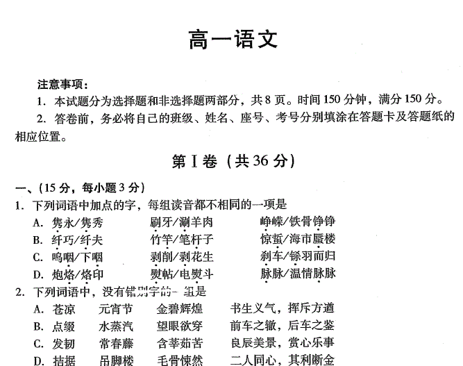 百度:【KS5U首发】山东省潍坊市11-12学年高一上学期期末考试 语文试题 PDF版