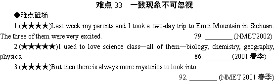 2012高考复习资料之英语难点讲解大全: 难点33 一致现象不可忽视