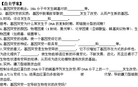 谷歌:2012年高一生物自学学案:4.4《基因突变》1(苏教版必修2)