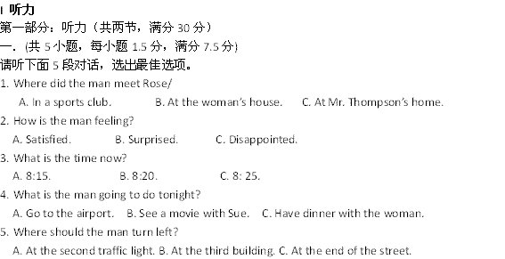 百度:河南省扶沟高中2012-2013学年高一第一次考试英语试题