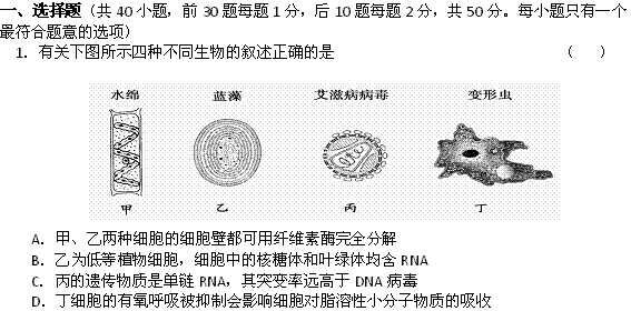 谷歌:《KS5U首发》辽宁省沈阳二中2013届高三上学期10月月考(生物)