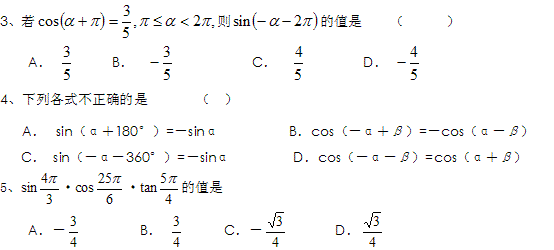 百度:浙江省磐安中学高一数学《三角函数:诱导公式》练习