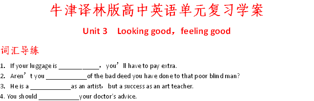 谷歌:湖南省株洲市第四中学高三英语单元复习学案:Unit 3 Looking good,feeling good(牛津译林版必修1)