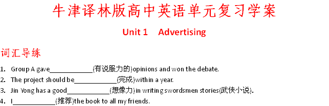 有道:湖南省株洲市第四中学高三英语单元复习学案:Unit 1 Advertising(牛津译林版必修4)