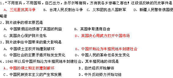 有道:浙江省岱山县大衢中学高中历史人民版:专题二 近代中国维护国家主权的斗争 单元测试